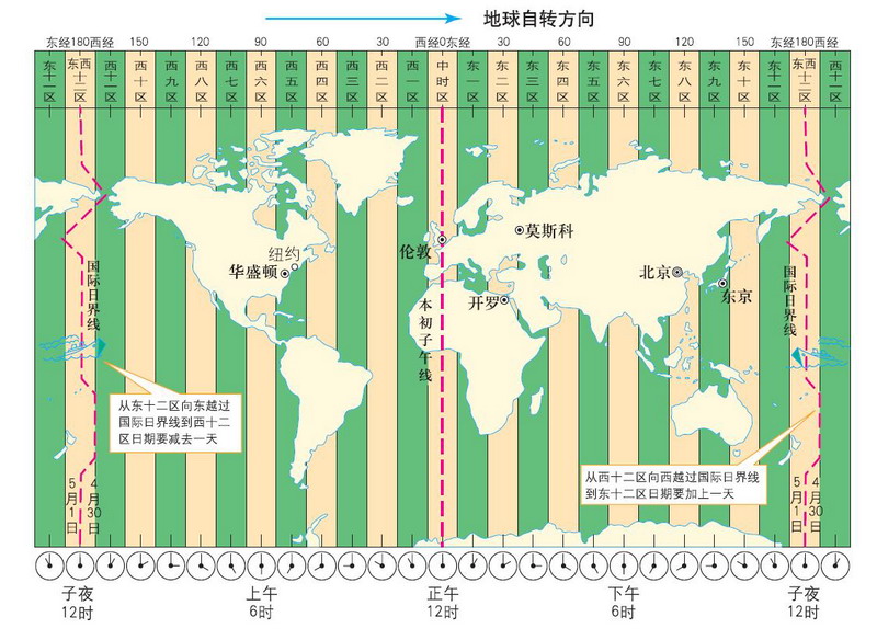 因为地球每天都会自西向东旋转,所以就会出现白天和黑夜的交替,这也就产生了时差,世界上最早和最晚的时差相差了整整一天。