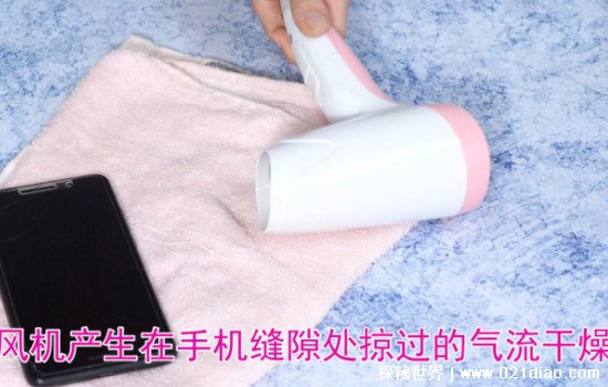 使用最低的温度,一定要注意是最低的温度,然后对准你手机的一些进水口进行吹风,例如耳机孔,电源,麦克风等等。这样的话可以让手机内部的水被蒸发掉。也可以防止内部被水破坏。
