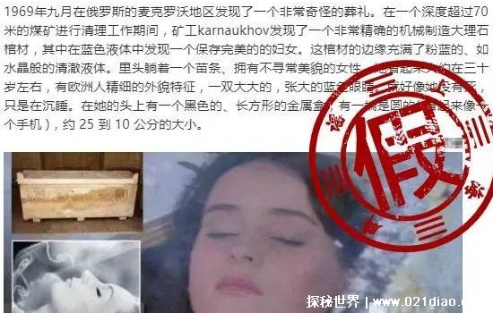 这就是一则彻头彻尾的假消息,其实关于这样的文章在几年前就已经在网上传播了。文章中描述的女尸女孩大概年龄在11岁,皮肤保存完好,没有一点腐烂的迹象,并且还可以从皮肤眼睛等看出是一个白人。不过这还不是震惊的事情,毕竟发现女尸很正常,真正让人感到不可思议的是这个女孩距今8亿年了。