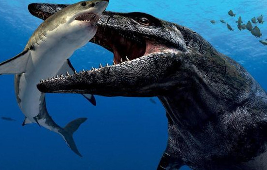 沧龙将同时期的大型海洋动物全部都捕杀殆尽了,这里面就有蛇齿龙、金厨鲨、海龟、薄片龙等。就拿金厨鲨来说吧,金厨鲨也叫白垩刺甲鲨,是当时体型最大的鲨鱼,一般可以达到7.5米,也是当时海洋中优秀的捕食者。金厨鲨外观像现在的大白鲨,也是十分凶狠的存在。但是沧龙却可以独自面对几只金厨鲨甚至还可以杀死这几只金厨鲨,最终金厨鲨在沧龙的捕食下被灭绝了。相信从这大家就已经可以看出海洋霸主沧龙有多恐怖了吧?