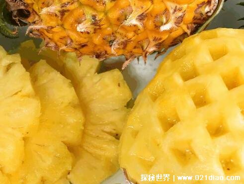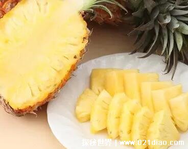 菠萝:切好的菠萝还需要用盐水浸泡,不能直接吃,否则菠萝中分泌的一种物质,会让舌头感到非常的涩。