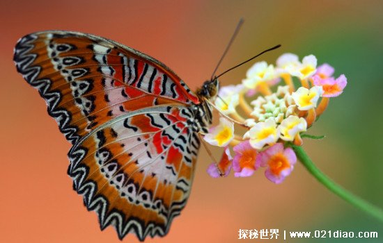 蝴蝶的主要食物就是花蜜,所以这也是为什么会在鲜花中看到大量蝴蝶的原因。蝴蝶一生比较短暂,主要是四个阶段,卵、幼虫、蛹、成虫。蝴蝶的种类十分丰富,全球有记录的蝴蝶总数大约有20000种,中国大概有2153种。蝴蝶一般都是很美丽的,其中以外表闻名世界的就有88多涡蛱蝶,红带袖蝶,猫头鹰环蝶,宽纹黑脉绡蝶,蓝闪蝶等。