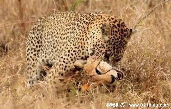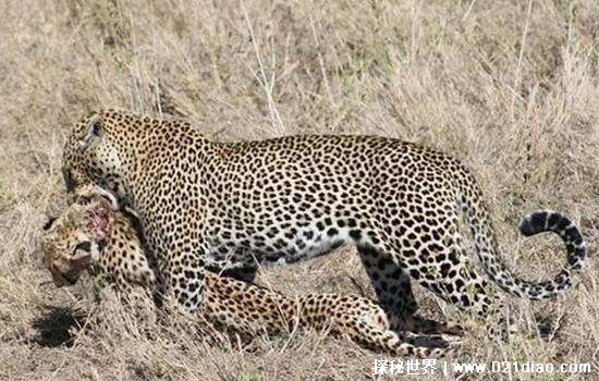 花豹和猎豹属于同种,但是花豹有时候依然会捕食猎豹,这让很多人不理解花豹为什么吃猎豹?其实理由也十分简单,动物界一直都是弱肉强食,花豹各方面都要强于猎豹,为了填饱自己的肚子捕食猎豹也十分常见,其实在花豹的眼中,只要是自己打得过的都可以成为自己的食物,包括一些幼年的老虎狮子等。