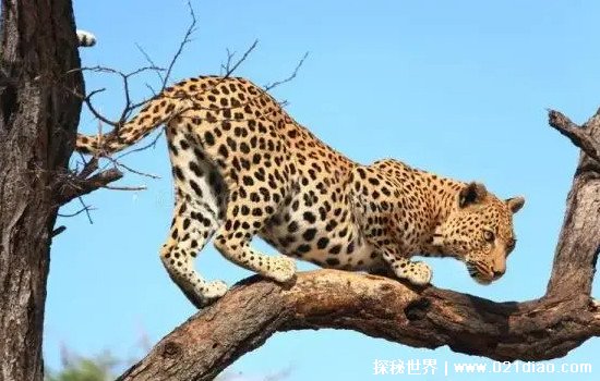 花豹也被称为金钱豹,在全世界很多地方都有分布,不管是喜马拉雅山脉还是撒哈拉沙漠都可以看见它们的身影。花豹比一般的猎豹体型要大一些,十分擅长偷袭猎物,速度也十分不错,追捕猎物的速度可达每小时80公里。同时花豹有着很大的力气,可以将比自己体型大一倍的猎物拖到树上去,这样做的好处就是可以防止自己吃不完的食物不会被其它动物吃掉,而且还可以延缓食物的腐烂速度。