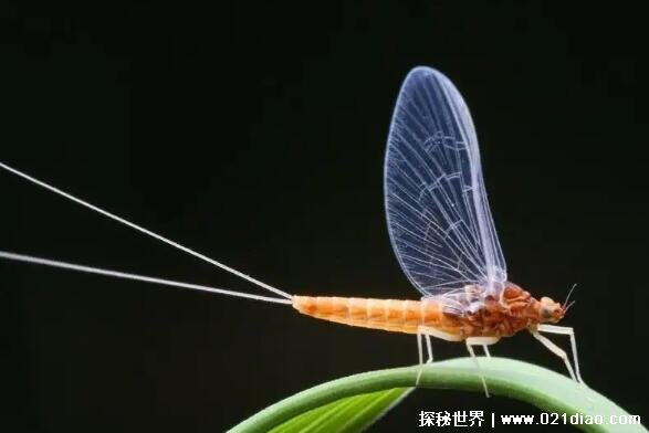 蜉蝣是一种原始而美丽的昆虫,距今已有2亿年的历史,属于有翅昆虫。虽然蜉蝣的幼虫能够在淡水中休眠数月甚至一年以上,然而蜕皮成成虫后,通常只有24小时,可以说是“朝深暮死”的典型代表,而且这个时间并不会进食,会在飞行中度过短暂的一生。