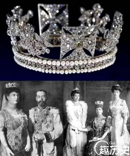 亚历桑德拉王后俄式王冠是英国王后亚历桑德拉的一群贵族闺蜜为庆祝她与爱德华七世的结婚纪念日而专门筹资为她定制的一顶王冠。这顶极致奢华的王冠总共镶嵌有488颗钻石,硬生生地搭出了一面“钻石墙”。现任英国女王伊丽莎白二世非常喜爱这顶王冠,可以说是从年轻戴到老。