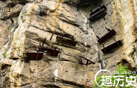还有学者认为,悬棺是通过修栈道运动崖壁上洞穴处的。但这种说法的漏洞在于,悬崖一般很少有缓坡可供搭设栈道,而由上而下搭架子是怎么搭到数百米的?这在工程技术十分落后的古代少数民族地区始终还是个迷。