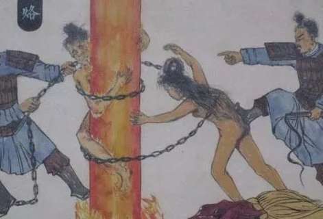 3,火烙,用炭火烧热铜格子,令人爬行,即坠炭上烧死。后来这种刑罚也演变成用烧红的铁烧来烫犯人