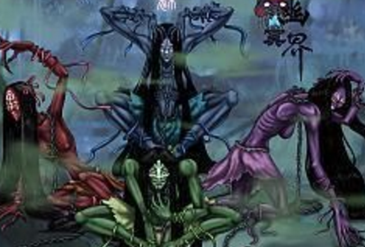 而还有另一种说法,相传鬼界入口位于镬铎岛,这里是鬼的聚居地,而魑、魅、魍、魉便是镇守这镬铎岛的四鬼,负责看守来往的小鬼。