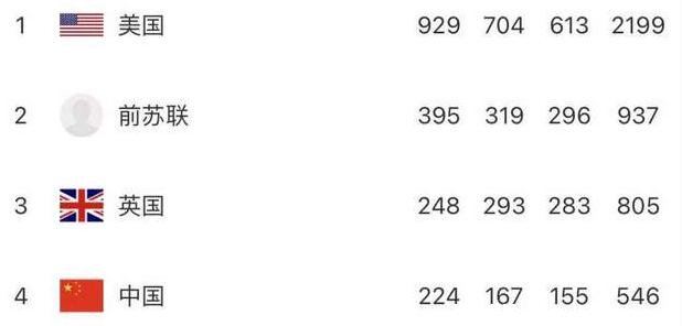 看到后面我们也能发现,苏联和中国是进步最大的,这是两个成立不久的国家,苏联进步的速度非常的快,可惜后来解体了,导致奖牌数清零。而中国在苏联解体后就登上了前十的座位,并且一直在努力追赶,可以看到,中国自1990年以来,每一届都进步很大,由此可见中国的国力也在快速壮大。