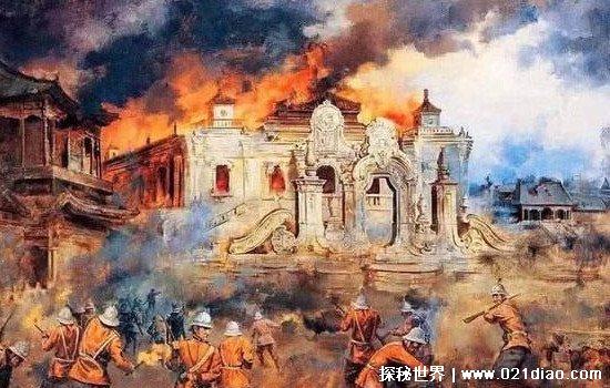 1900年,英国、美国、法国、德国、俄罗斯、日本、奥匈帝国、意大利八国联军悍然发动了对清朝的侵略战争,清朝由于慈禧的掌权而腐败不堪,完全不敌八国联军,八国联军攻进了京城,开始对圆明园进行了抢夺。各种价值连城的宝物全部都被八国联军洗劫一空,最后八国联军更是再次烧毁了圆明园。就这样圆明园成为了一片废墟。