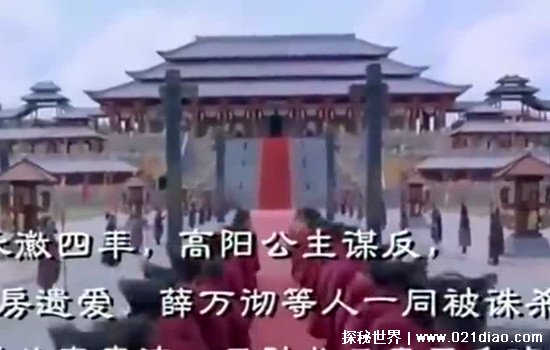 李世民死后李治继位,李治也是对高阳公主看不顺眼,可能是因为觉得他丢了皇家颜面,而后高阳公主又诬陷说丈夫的哥哥想要非礼自己,李治下令调查,这一调查就出大事了。居然发现了房遗爱曾经和高阳公主一起准备谋反推到李治。这下李治可气坏了,你先前通奸不说,现在还想对我下手,于是就下令将房遗爱诛杀,高阳公主赐死,而房家因因此受到了牵连,大部分被流放了。