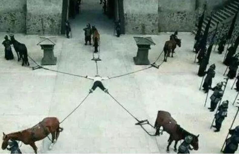 所谓俱五刑就是指把砍头、刖、割手、挖眼、割耳合一,也就是我们所说的大卸八块。这个刑罚和五马分尸有些相似,不过也有一些小差别。俱五刑最早的起源当属吕后对戚夫人了,将其做成了“人彘”。