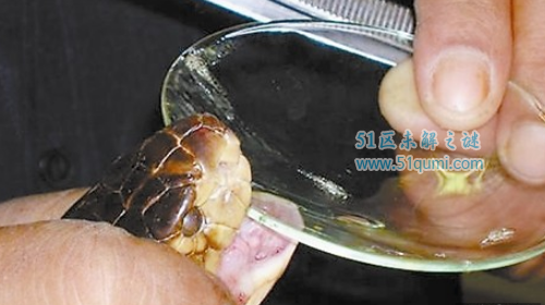 眼镜王蛇毒毒性较大,其中含有多种毒素成分,有些具有神经毒性、细胞,中毒后几分钟即可导致死亡,危害较大。眼镜王蛇神经毒素具有独特的“三指结构”,即由3个相互临近的环状结构从1个小的球形的、由4对保守二硫键连接的疏水核心伸出,形似3根伸开的手指结构,该结构包含长链神经毒素、短链神经毒素、弱神经毒素、心脏毒素、毒蕈毒素及含有1个游离巯基的长链神经毒素。蛇毒中的α、β神经毒素,阻滞神经受体,引起急性迟缓性麻痹症状,主要出现眼睑下垂、吞咽困难,甚至出现因呼吸机麻痹引起的急性呼吸衰竭。明确被眼镜王蛇咬伤,早期使用抗蛇毒血清有利于降低急性呼吸衰竭的发生率,根据情况在72h内可以重复使用,以便彻底中和蛇毒;如果被咬的蛇种类不明确,在观察期间出现眼睑下垂、嗜睡、乏力、口唇麻木、吞咽困难、呼吸困难等症状,应考虑神经毒素所致;中毒者如出现呼吸衰竭或呼吸骤停,要及时置入人工气道和机械辅助呼吸。由于72h内神经毒素仍可能引起神经肌肉麻痹,患者应接受严密的医学观察,尤其是在早期;如需要转诊和运送,应配备必要抢救的人员及器械,预防呼吸衰竭。