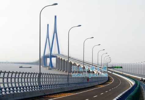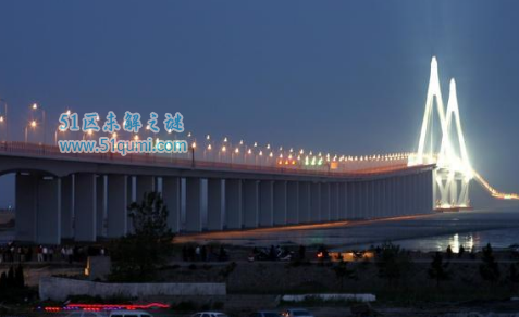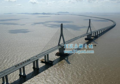 一座横跨杭州湾的跨海大桥,该桥北起浙江省嘉兴市海盐郑家埭,南至宁波市慈溪水路湾。大桥引入了景观设计概念,借助“长桥卧波”的美学理念,呈现S形曲线,具有较高的观赏性、游览性。在离南岸大约14公里处,有一个面积达1.2万平方米的海中平台。这一海中平台是救援平台,同时也是一个绝佳的旅游休闲观光台。