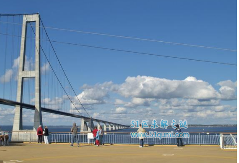 是一座连接丹麦西兰岛和菲英岛的大桥,横跨大贝尔特海峡。大桥由三部分组成,从西兰岛到斯普奥岛之间为悬索桥和海底隧道,从斯普奥岛到菲英岛为箱梁桥,通常把东桥称为大贝尔特桥。该工程总投资55亿美元,全长17.5公里。是欧洲当时预算最高的桥梁工程。(图片来自东方IC)
