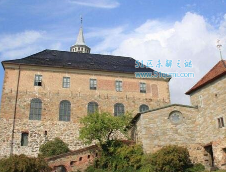 阿克斯胡斯城堡据说是挪威闹鬼最凶的地方。它在13世纪被当成奥斯陆防御前哨的城堡。而在18、19世纪它被当成监狱使用。据说在那段时间里,里头的囚犯所面对的状况是非常残酷的。此后在二战期间城堡也被纳粹使用过,据当地人说,纳粹在那里进行处决,所以这座堡垒会闹鬼闹得凶。传说中甚至还有一只名叫Malcanisen的恶魔狗保卫着这座堡垒。
