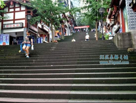 千厮门梯道位于小什字家乐福旁,一条梯路直达嘉陵江边,全长约200米,宽约6米,分新旧两段,共12层395级。市民可以便捷地回味老重庆的码头文化,但前提是你不怕爬坡上坎。