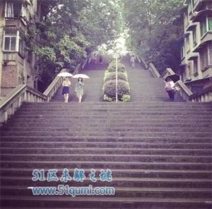 重邮的天梯共115级,两边都是宿舍,女生宿舍位于顶端,这意味着他们每天都要跟天梯打交道。“夺命天梯”是重邮学子的叫法,指的是重邮一个着名的连续长石梯,要减肥的重邮妹子,申请一间山顶宿舍保准成功。重邮学子说,爬过夺命天梯,其他的梯坎都是浮云。