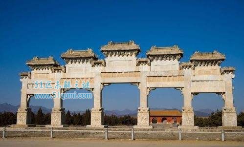 清东陵清东陵属全国重点文物保护单位,是中国最后一个王朝首要的帝王后妃陵墓群,也是中国现存规模最大、体系最完整的古帝陵建筑,共建有皇陵五座—顺治帝的孝陵、康熙帝的景陵、乾隆帝的裕陵、咸丰帝的定陵、同治帝的惠陵,以及东(慈安)、西(慈禧)太后等后陵四座、妃园五座、公主陵一座,计埋葬14个皇后和136个妃嫔。