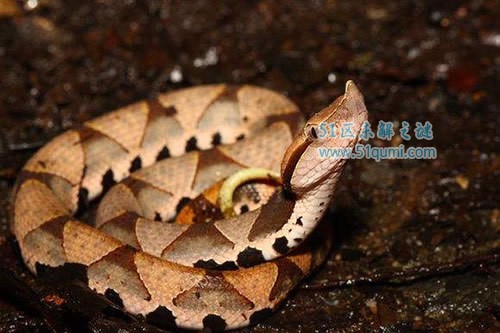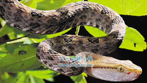 白眉蝮是蛇目、蝰科、主要栖息在宽阔田野中的一种剧毒蛇类。全长约1米,重达1.5公斤,头比较大,与颈区分明显,吻短宽圆,头背的小鳞起棱,鼻孔大,位于吻部上端。体背呈棕灰色,具有3纵行大圆斑,每一圆斑的中yang为紫色或深棕色,外周为黑色,最外侧有不规则的黑褐色斑纹,腹部为灰白色,散有大的深棕色斑。受惊时并不逃离,而是将身体盘卷成圈,并发出呼呼的出气声,身体不断彭缩,持续半小时之久。以鼠、鸟、蜥蜴为食,采用突袭方式,躯干前部先向后曲,猛然离地再向前冲并咬住猎物,咬住不放直至吞食下去。