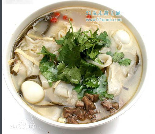 著名的成都小吃。用面粉擀制成面条,煮熟,舀上炒制的猪肉末而成。成菜面条细薄,卤汁酥香,咸鲜微辣,香气扑鼻,十分入味。此菜在四川广为流传,常作为筵席点心。