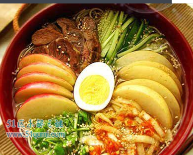 据民间传说,这一天吃了纤细绵长的冷面,就会预兆多福多寿、长命百岁,故冷面又名“长寿面”。以前中国人看到压制冷面的器具是木合子,便称为“盒勒面”。