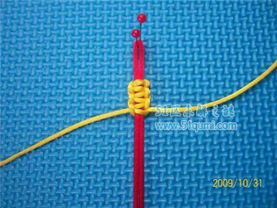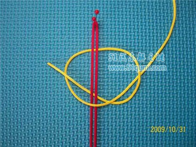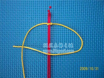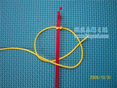 平结是以一线或一物为轴,将另一线的两端绕轴穿梭而成。是中国结的基本结之一。