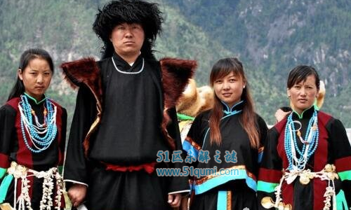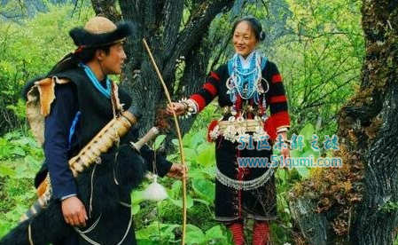 珞巴族妇女喜穿麻布织的对襟无领窄袖上衣,外披一张小牛皮,下身围上略过膝部的紧身筒裙,小腿裹上裹腿,两端用带子扎紧。男子的服饰,充分显示出山林狩猎生活的特色。他们多穿用羊毛织成的黑色套头坎肩,长及腹部。背上披一块野牛皮,用皮条系在肩膀上。奇闻呀 wwW.QiWEnyA.com