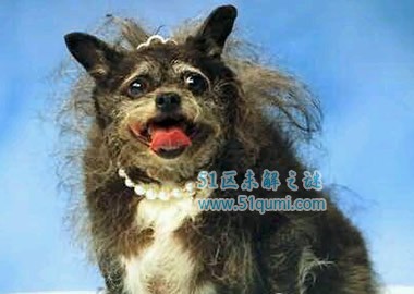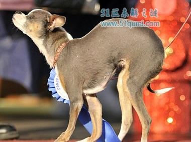 2010年的年度“最丑狗状 元郎”是一条后腿诡异扭曲、嵴柱严重畸形的驼背吉娃娃,永久性斜视使得 它的丑更上一层楼。它也有一段不堪回首的往事,曾经遭受抛弃,成为一 条浑身爬满跳蚤和扁虱的流浪狗。幸好后来得到动物保护协会的收留,并找到了新的主人。