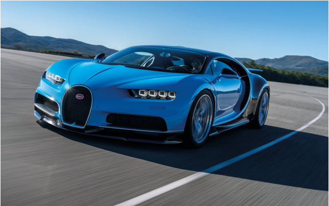 布加迪Chiron搭载改进后的8.0L W16四涡轮增压汽油发动机,最大功率1479马力,峰值扭矩1179磅·英尺,匹配7速双离合变速箱及四轮驱动系统,百公里加速耗时2.5秒。