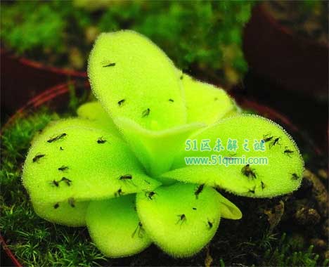 捕虫堇学名为“Pinguicula gigantea”,这种植物是一种典型的机会主义者,它们会紧紧抓住所有降落到它们叶子表面的昆虫并立即开始消化猎物。捕虫堇的上表面覆盖着一层粘性消化酶,这种消化酶不仅仅可以粘住并消化蚊子、昆虫等猎物,而且还可以吸收这些昆虫身上所携带的花粉中的营养。
