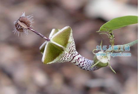 降落伞花学名为“Ceropegia woodii”,这种奇异植物的花朵呈现降落伞形状,内部的花瓣好象灯丝一样连接四周,花朵中心就像是一根毛茸茸的棒棒糖从内部伸出。整个花朵收拢起来就会形成一个管状物,边缘有许多细小的茸毛向外伸展。当有昆虫被花朵的气味吸引而来时,就会被管状物包裹其中,从而成为降落伞花的营养餐。不过,降落伞花从来不吃苍蝇。当苍蝇飞来时,降落伞花会将其包裹于花朵中,直到茸毛最终松开,苍蝇才可得以逃脱。当苍蝇飞走时,它也带走了降落伞花的花粉。苍蝇只是它们传粉的工具而已。