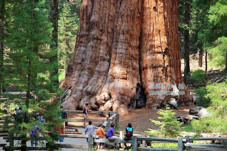 雪曼将军树,已超过3500年树龄,高83.8米,周围31米,是今日世界上最大最老的大树。公园里还有成群的参天水杉,都长得又高又粗,中国人习惯把巨大古老的树叫做神木,而美国水杉国家公园就是神木的故乡了。一般游客到水杉国家公园参观,都会先到巨大的森林村停留,这里有游客服务中心及一些小木屋礼品店,接看第二站就到雪曼将军树拍照留念,途沿小径绕行,游客们散步其中,会感到心怡气爽。有一些倒塌的巨木,被人故意将树干挖空,让汽车从树干中间穿越过去,由此也可见一般水杉直径之大,确属惊人。
