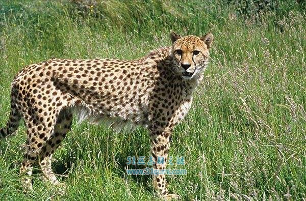 猎豹身长140厘米,还不包括75—80厘米长的尾巴。平均肩高80厘米,体重50—60千克。皮毛有引人注目的黑色斑纹,头上、颈上和背上有蓝灰钯的毛。上部的皮毛呈沙黄色,下部呈白色,上面有许多小的黑色斑点,一条黑色的斑纹一直延伸到两只眼睛的下角。猎豹可以单独或者成小群捕捉猎物。它们通常在早晨或者傍晚的时分出动,先是小心地跟随猎物(常常是小羚羊),然后就猛扑上来全力追赶。