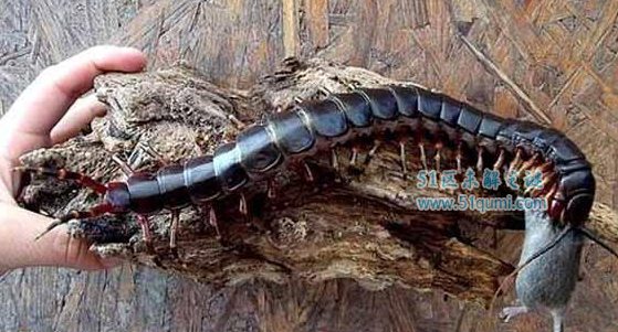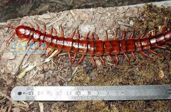 秘鲁巨人蜈蚣也叫亚马逊巨人蜈蚣或是秘鲁巨型黄足蜈蚣,它们拥有深褐色的躯体以及黄色的步足。这种蜈蚣的成体一共有21到23个体节,不算头部,其躯体的第一节称作颚肢节,其附肢特化成了猎杀工具——颚肢,蜈蚣们就是靠它向猎物体内注射毒液。奇闻呀 www.QiWENYA.coM