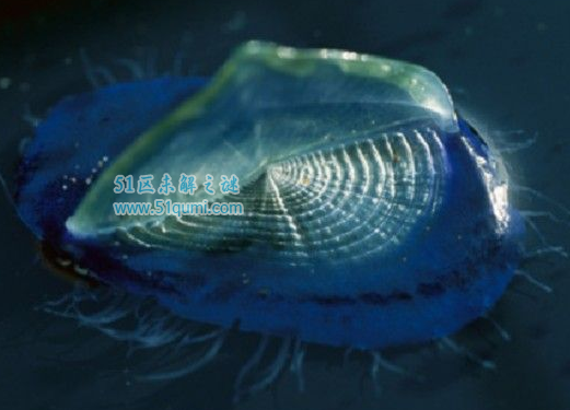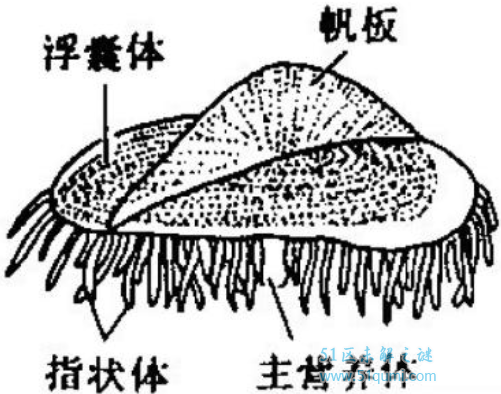 水母浮囊体硬几丁质,呈椭圆形,盘状,直径5~8厘米,因浮囊体上方竖立一三角形帆板而得名。浮囊体由10余个同心环组成,内部有放射状的细管网,充满气体。在浮囊体腹面中yang有一个主营养体,其周围有许多小营养体。小营养体之间有生殖体。浮囊体边缘有许多指状体。生活时浮囊体呈青蓝色,帆板无色透明,随风或海流漂浮于水面。著名的暖流指示种。日本、菲律宾、中国东南沿海均有分布。奇闻呀 wwW.QiwenYa.com
