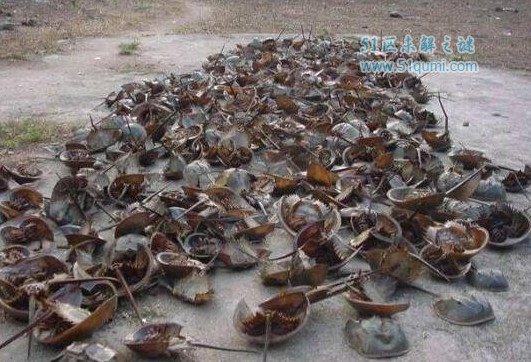 鲎有很高的药用价值,全身都是宝,它的肉、壳、尾皆可入药,它的血液含铜离子呈蓝色,从这种蓝色血液中提取的“鲎试剂”,可准确、快速地检测人体内部组织,是否受细菌感染。