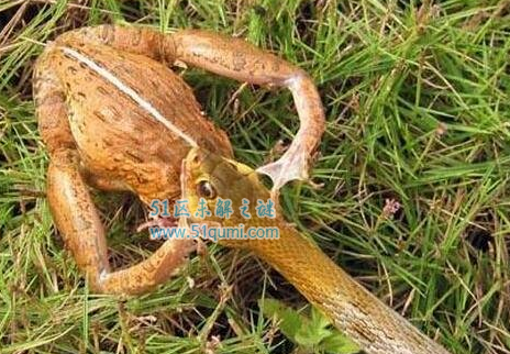 在国内对蛇和青蛙的关系基本就是:蛇吃青蛙毫不费力,青蛙遇到蛇必然是死路一条!一条草蛇正在吞食青蛙,虽然青蛙拼死抵抗,前爪紧紧抵挡住蛇头,只是青蛙头部已经被草蛇吞入蛇嘴,这青蛙逃不过蛇吃青蛙现象!这世界有种青蛙却是专门吃蛇的,这只青蛙究竟长什么样,有没有毒,它是害虫,还是益虫,我们现在就去看看吧。
