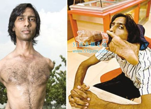 在印度的一个小乡村中,有着一位奇人那就是橡胶人伟杰·沙马,从小开始习武,并且发现自身的柔软性非常的好,就开始有意识的训练这方面的能力,在一次的偶然的机会下,看到了《吉尼斯世界纪录大全》中的钻网球拍绝技,他认为自己可以比他做的更好,于是乎每天花4个小时的事件来锻炼自己身体的柔韧性。皇天不负有心人,终于在2005年的时候橡胶人伟杰·沙马是终于成功的打破了这一项世界纪录,成为世界上身体柔韧性最好的男人人送橡胶人的称号,他所挑战的吉尼斯世界纪录是这样的:他从一个长、宽、高分别都只有33、40、48厘米的箱子中能够钻进钻出,打破了这一项的世界纪录。