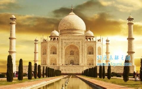 泰姬陵建于1632年到1653年,是莫卧儿皇帝沙贾汗为了纪念自己心爱的妻子而建,是世界上保存最好的、建筑风格最美的陵墓之一,是莫卧儿帝国的主要建筑杰作,也是印度的奇迹之一。除了闪亮的大理石顶外,陵墓还包括清澈见底的池塘、广阔的花园等。