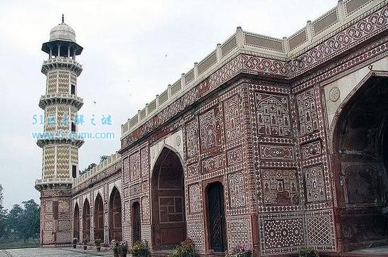 贾汗吉是印度莫卧儿帝国的第四代皇帝,统治时期从1605年持续到1627年。这个著名的陵墓位于巴基斯坦拉合尔的一个墙面花园内,有4个30米高的尖塔。贾汗吉之墓是其儿子贾汗吉在死后的十年后建立起来的,内部用壁画和有色大理石装饰。