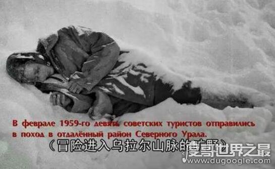 dyatlov事件中九位丧生的滑雪登山者,最离奇的是在他们的身上和随身衣物中发现了强烈放射物,因此被怀疑是极端力量杀死了他们。真相在三十年后被曝光,一位调查员说,当时有很多不明飞行球体的目击报告,可能是军方的秘密实验导致的。