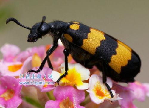 黄黑小斑蝥,外形与上种相似,体小,长10-15mm,生态与分布同上种。