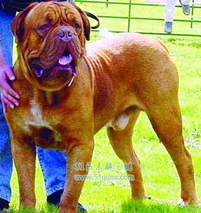 波尔多犬也叫法国獒犬,凶悍威猛力气极大,虽然经过一段时间的培育已经不像原始祖先那样强悍,但是依然让人畏惧。