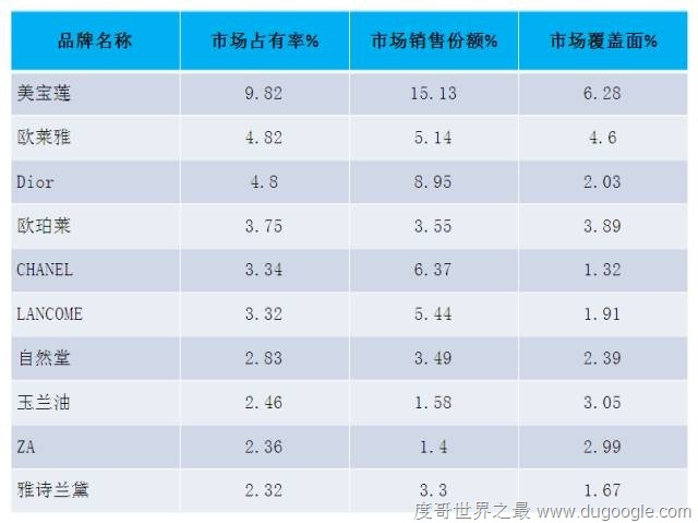 现在化妆品实在太多了,美宝莲,欧莱雅,自然堂等等,品牌众多,美女们为了选哪种化妆品也是费尽心思,各种美妆排行榜也是多如牛毛,今天就来和度哥世界之最网一起来看看权威机构发布的中国美妆十大品牌排行榜。这可是以市场的销量数据来说话的哦。