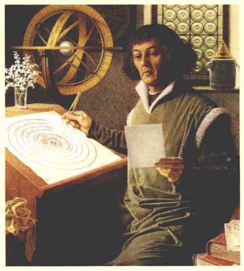 古代的人们看到毎天太阳东升西落,认为地球是宇宙的中心,太阳围绕地球转。最 早提出地球围绕太阳转的是波兰天文学家哥 白尼。他是近代天文学的奠基人。