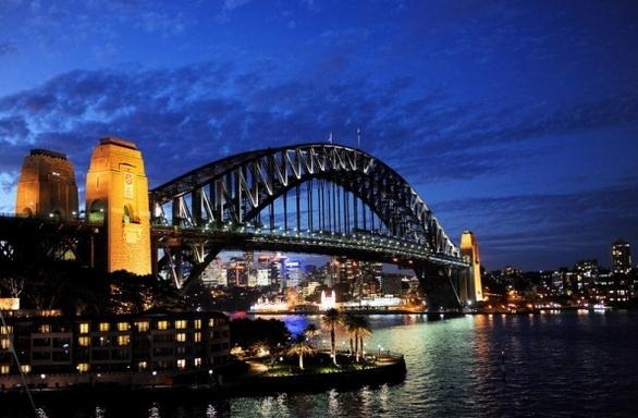 悉尼(雪梨)港湾大桥(Sydney Harbour Bridge)是世界上最高的钢铁拱桥,最高之处有139公尺;也是世界上最宽的长距桥梁,路面宽度49公尺,有八条车道,两条铁路线,及一条人行与自行车道,跨越悉尼港,连接悉尼北岸与南岸。悉尼港湾大桥与悉尼歌剧院,由于造型独有美感,现已成为澳洲的精神指标跟地标。