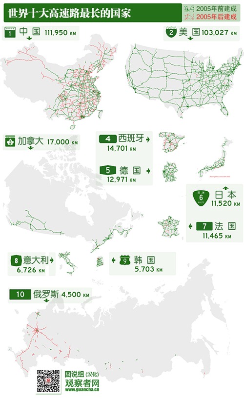 中国的经济正在高速的发展,与此同时,铁路,高速公路也都在大力兴建,尤其是在提出“一带一路”后,兴建力度更是空前强大,在给中国经济注入新的活力的同时,也方便了大家的出行,2015年5月29日,投资约23.4亿元的滇藏新通道正式投入建设,全长280公里。自2005年以来,中国高速公路新增7万多公里,通车总里程达11.195万公里,位居世界第一,为“一带一路”的全面推进打下坚实基础。