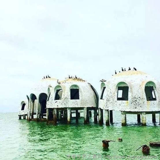 这些露出水面的圆顶屋,是不是看起来很诡异?据说以前一位叫 Bob Lee 的建筑师设计的太阳能度假小屋。